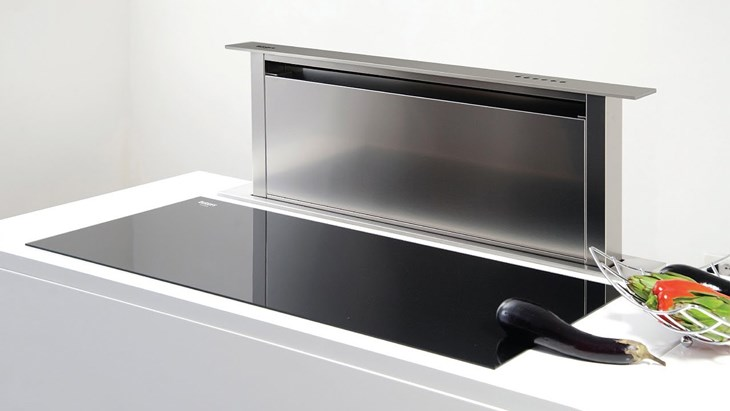 Máy hút mùi để bàn được lắp âm vào bàn bếp giúp tiết kiệm không gian bếp cực kỳ tốt