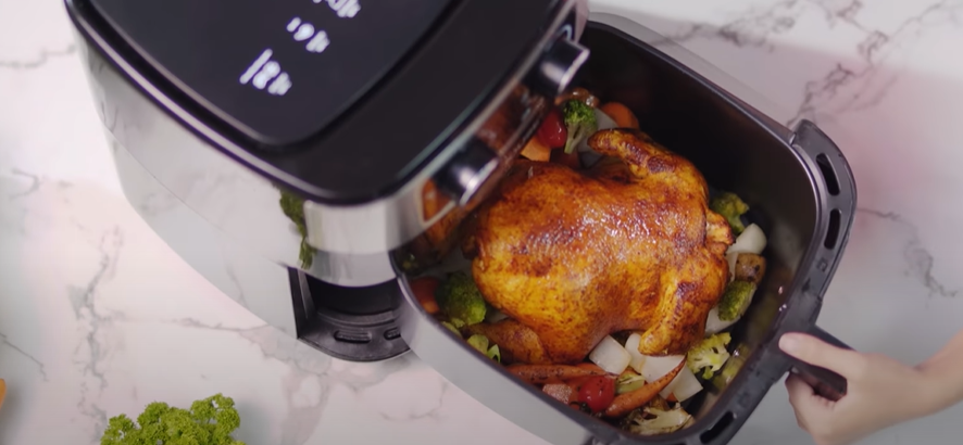 Nướng gà nguyên con chỉ với 1 vài thao tác bấm, nồi chiên không dầu giúp bạn tiết kiệm thời gian tối đa